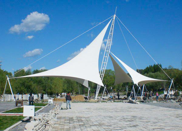 景观膜结构材料有诸多好处和优点,膜材料的几大特点重量轻、强度高、防火难燃、自洁性好,不受紫外线影响、抗疲劳、耐扭曲、耐老化、使用寿命长。具有高透光率,热吸收量很少。正是因为这种跨时代的膜材料的发明,使膜结构建筑成为现代化的建筑。