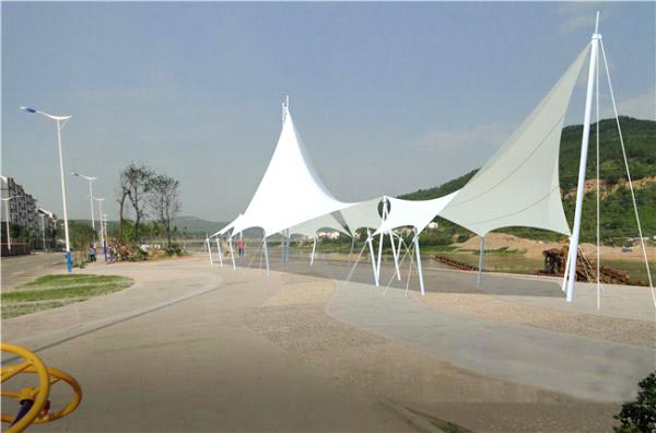 景观膜结构材料有诸多好处和优点,膜材料的几大特点重量轻、强度高、防火难燃、自洁性好,不受紫外线影响、抗疲劳、耐扭曲、耐老化、使用寿命长。具有高透光率,热吸收量很少。正是因为这种跨时代的膜材料的发明,使膜结构建筑成为现代化的建筑。