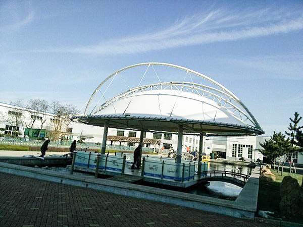 膜结构膜材以其轻盈飘动的造型、柔美带有力量的曲线和大跨度和大空间的鲜明个性和标识性,应用于城市小品设计中。近年来,膜结构的快速发展,特别是景观设施方面应用,让大家感受到了膜结构建筑的魅力,景观膜结构设计要求具有广泛的可读性且雅俗共赏,既有超凡脱俗的艺术价值,又能使大众喜闻乐见与大众的生活息息相通。
