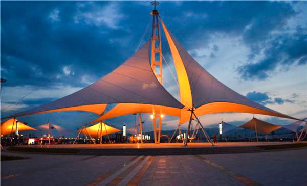 景观膜结构材料有诸多好处和优点,膜材料的几大特点重量轻、强度高、防火难燃、自洁性好,不受紫外线影响、抗疲劳、耐扭曲、耐老化、使用寿命长。具有高透光率,热吸收量很少。正是因为这种跨时代的膜材料的发明,使膜结构建筑成为现代化的建筑。