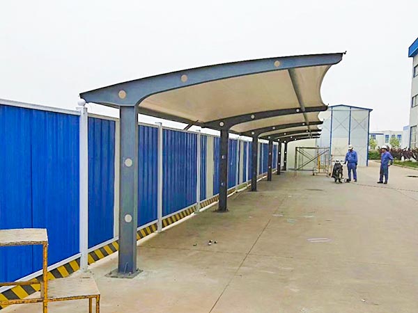 2、艺术性:除了一般雨蓬不可比拟的实用、耐用、遮风挡雨的功能外,膜结构雨蓬更是一座雕塑,一件艺术品,给人美的视觉享受。其柔美,其曲线,其刚柔并济,其丰富造型,其洁白无瑕,让人眼前一亮,回味悠长。