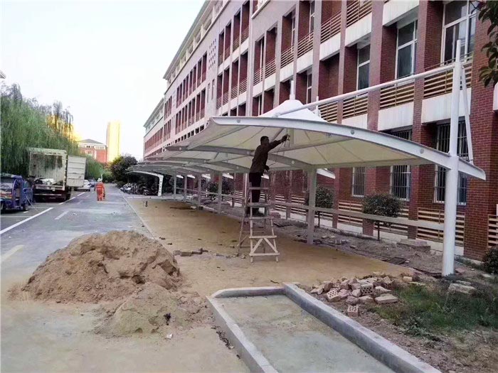 2、艺术性:除了一般雨蓬不可比拟的实用、耐用、遮风挡雨的功能外,膜结构雨蓬更是一座雕塑,一件艺术品,给人美的视觉享受。其柔美,其曲线,其刚柔并济,其丰富造型,其洁白无瑕,让人眼前一亮,回味悠长。