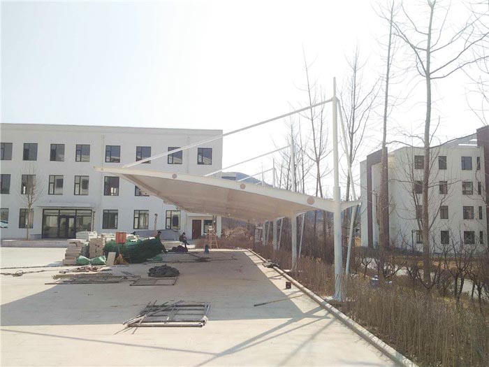 2、艺术性:除了一般雨蓬不可比拟的实用、耐用、遮风挡雨的功能外,膜结构雨蓬更是一座雕塑,一件艺术品,给人美的视觉享受。其柔美,其曲线,其刚柔并济,其丰富造型,其洁白无瑕,让人眼前一亮,回味悠长。