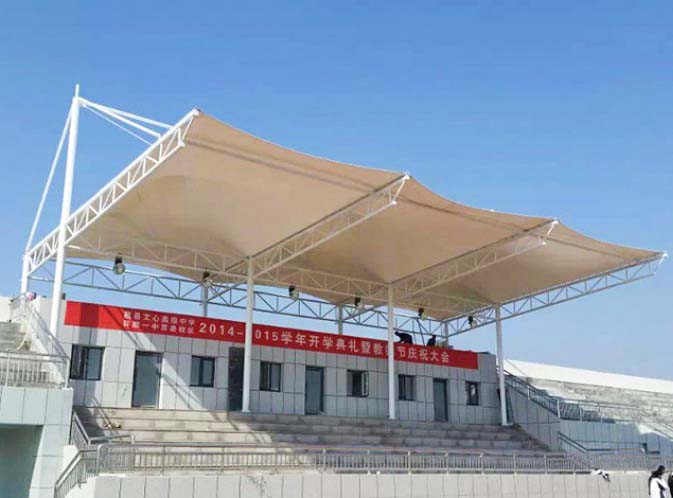 (3)膜结构体育看台棚的使用寿命与保养要求取决于设计、所用材料、建造水平和外部环境的综合作用。